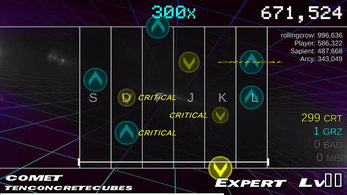 - 6 button rhythm game where the notes don't scroll, but the judgment line does!