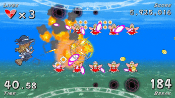 STARDUST SINNER is a caravan rail shooter that puts you behind the broomstick of ordinary magician Marisa Kirisame!